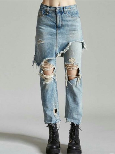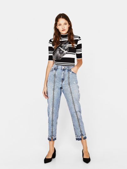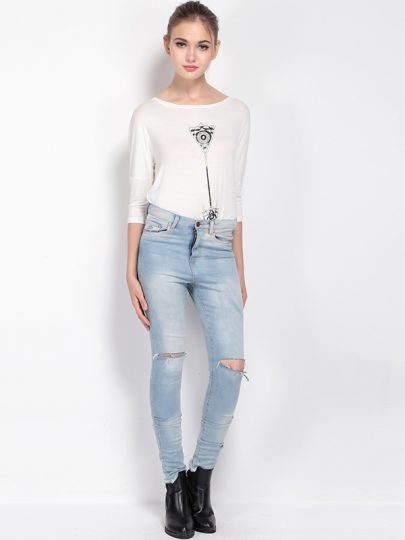 Rainbow Stripe Printed Elastic Twill Pencil Jeans