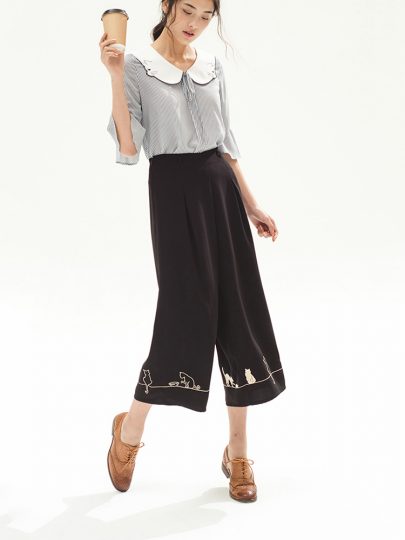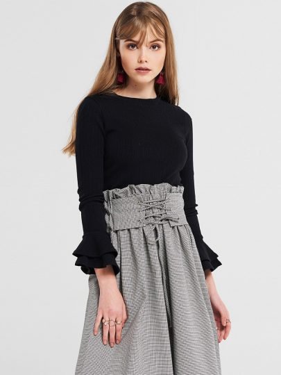 Commuter OL Plaid High Waist Strap Wide Leg Pants