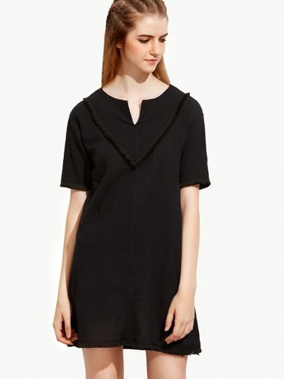 Simple V-neck plaid small fragrance dress
