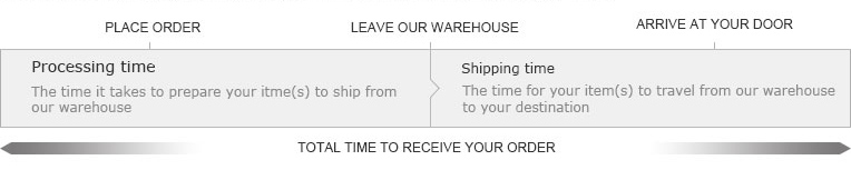 - 1. Receiving Time = Processing Time + Shipping Time. Weekends and holidays are excluded from processing and shipping time, so please account for non-business days when choosing your shipping method. Processing Time is 1-5 working days.